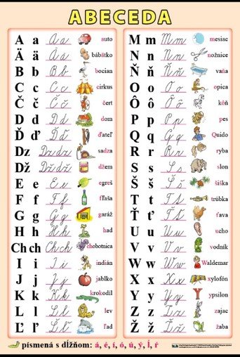 Nástenný obraz na vyučovanie češtiny na všetkých typoch škôl aj na domáce využitie. Kvalitná tlač, obojstranná laminácia, závesný systém pri variantách XL a XXL v cene (plastové lišty, očká); varianta A3 je bez líšt